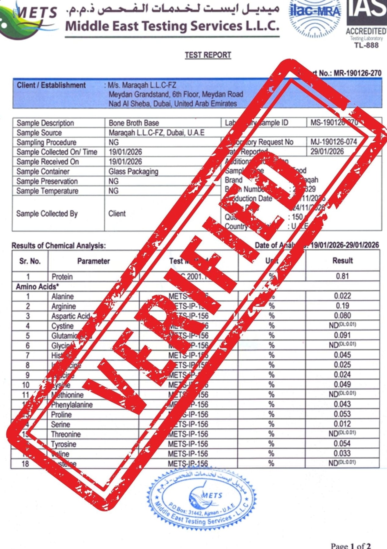 Our pastes are lab-tested for full transparency. The results confirm that our unique preparation process delivers real, naturally occurring protein and a robust amino acid profile, including Proline.